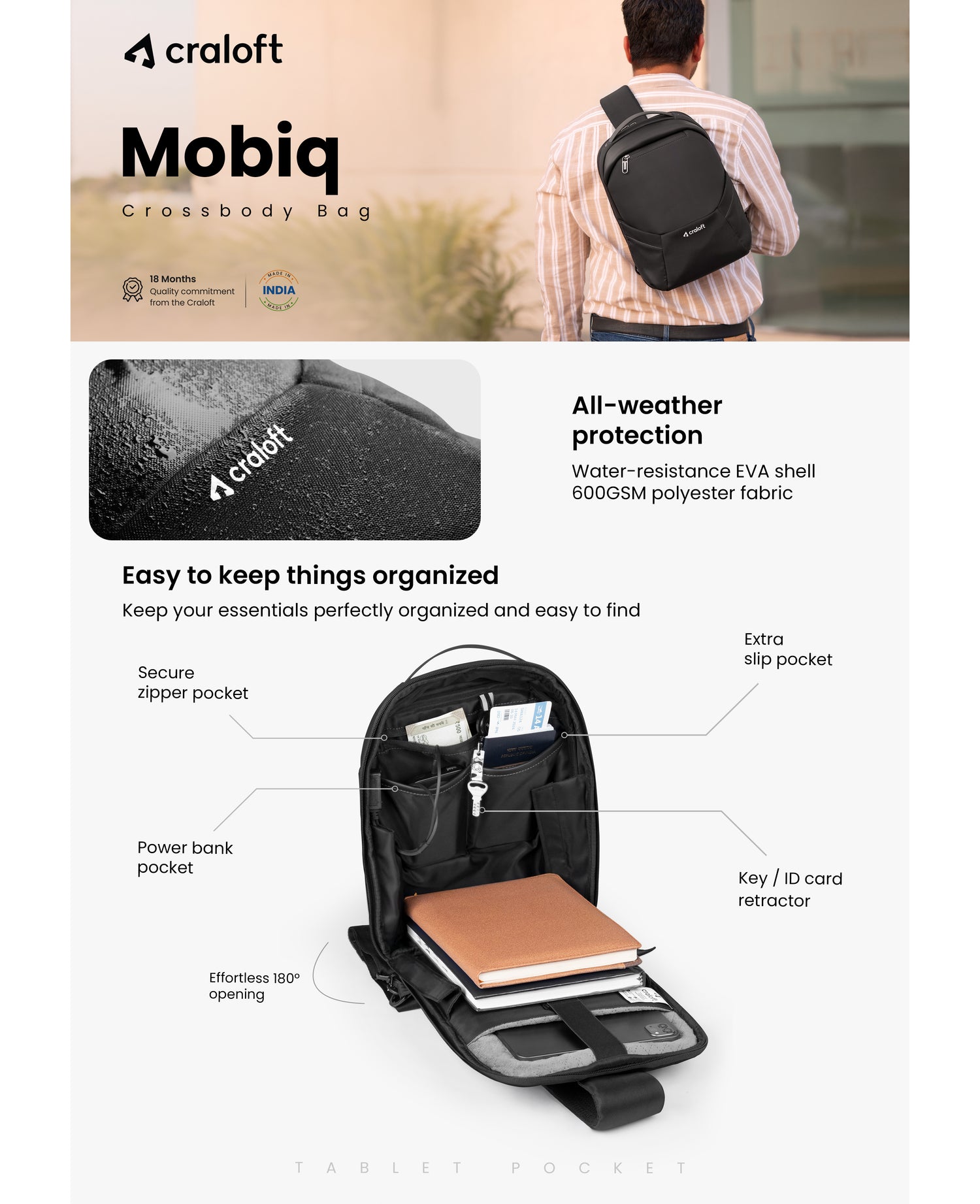 Meet the Mobiq Crossbody Sling Bag for Men — a smart, compact companion designed for modern professionals, travelers, and urban commuters. Combining sleek aesthetics with tech-friendly features, this men’s sling bag is made for those who value functionality, security, and minimalist style on the go.