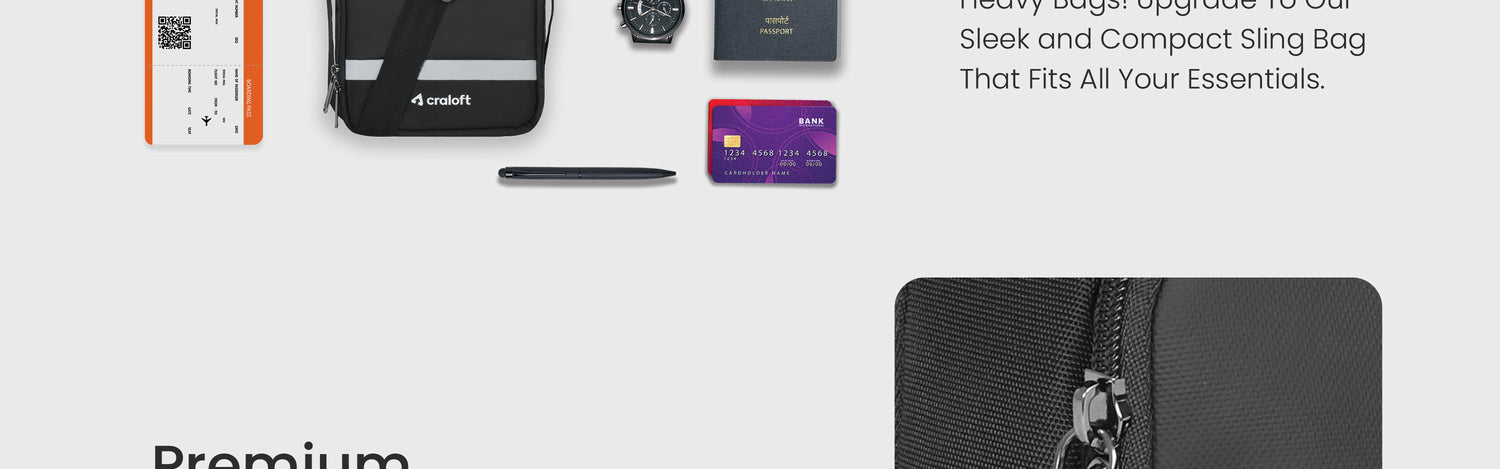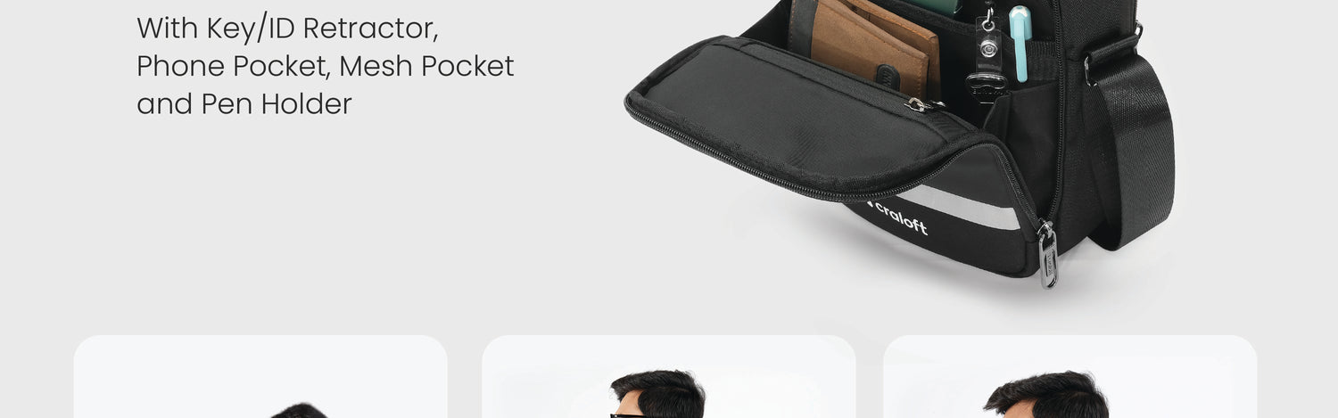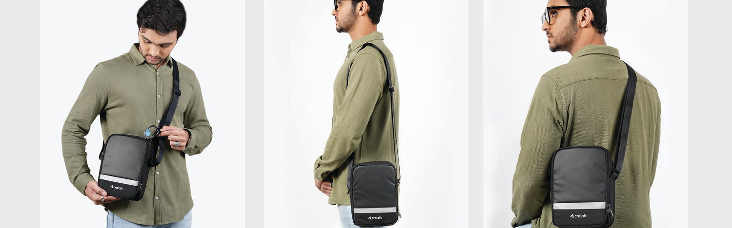 - Craloft side bag looks compact but is too spacious for carrying all necessities like a wallet, cellphone, charger, earphones, sunglasses, an A5 book, pens, keys, cards, etc.