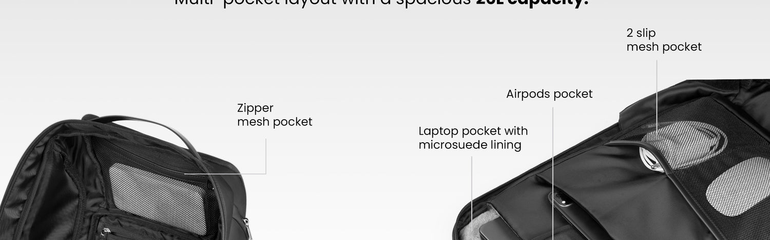 - Microsuede-Lined Laptop Compartment – Scratch & shock protection