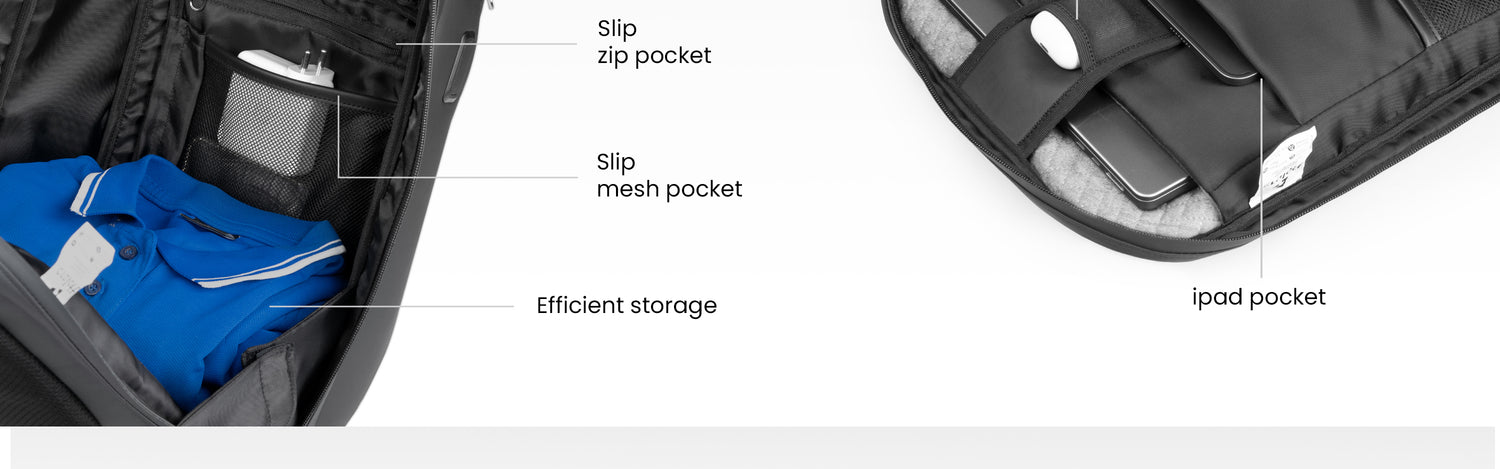 - Dual side zipper pockets with inner mesh lining for bottles or umbrellas, plus one dedicated power bank pocket